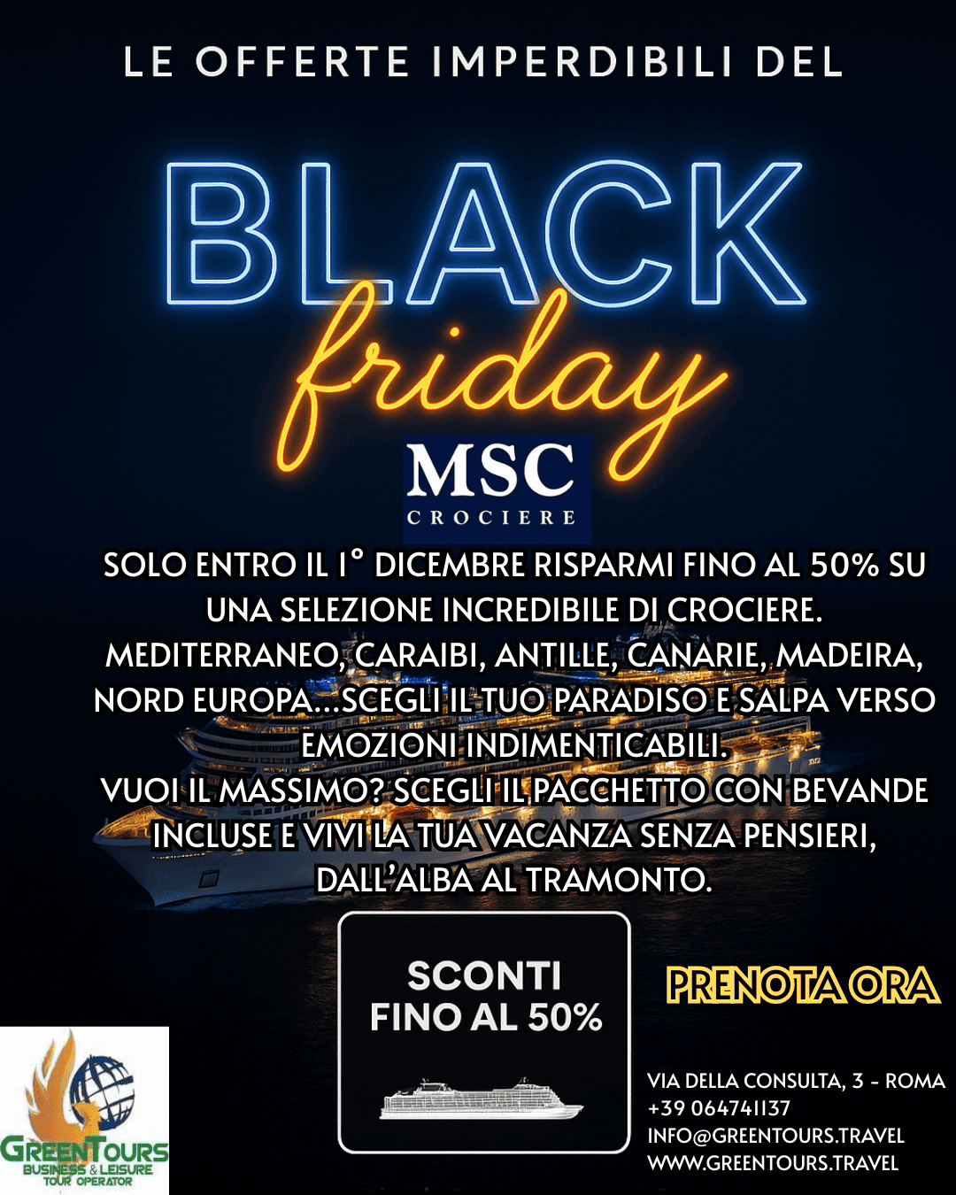 Solo fino al 1° dicembre risparmi fino al 50% su una selezione incredibile di crociere.